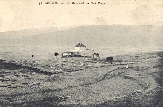 Image à la une : cette carte postale de 1913/1914 représente le marabout de Sidi Bousserghine, appelé ici Marabout du Fort Prioux (du nom du lieutenant Prioux tué en 1911). L’expéditeur de cette carte, écrite le 26 octobre 1914, commente ainsi la photo : « ceci représente une sorte d’église comme il y en a beaucoup chez nous. Là, les arabes et les marocains vont faire leurs dévotions. Tel que tu le vois c’est tout à fait sur le haut d’une montagne ».