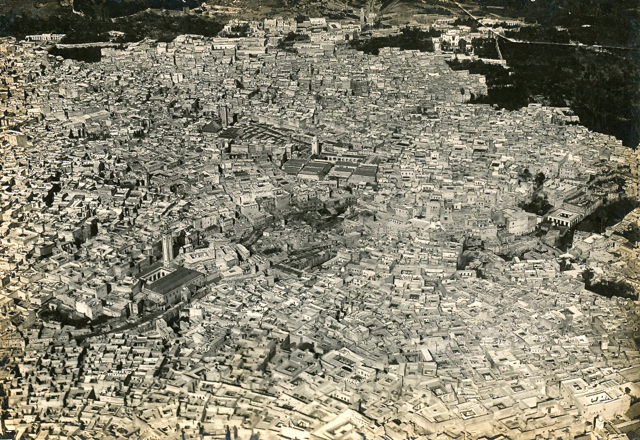 Image à la une : Vue aérienne de la médina de Fès prise le 11 janvier 1926 à une altitude de 200 mètres.
