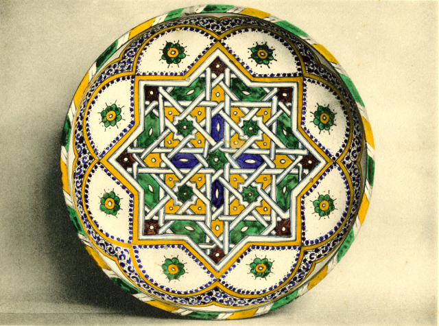 Et l’apprenti, s’il a mal pris ses mesures pour peindre un vase ou orner un plateau, cachera « le loup » avec habileté, parfois fera une trouvaille originale.Chose plus curieuse, on ne trouvera presque pas dans l’architecture, dans l’ornementation de fautes de proportions. Si l’on regarde de loin une ville marocaine, on ne verra presque jamais une maison , un minaret dont les dimensions rompent l’harmonie du site.