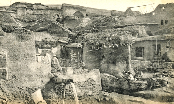 De la crête d’un dernier mamelon, on aperçoit enfin la « station ». C’est un vaste campement autour de quelques gourbis. Et combien pittoresque ! Il se cramponne sur les deux versants abrupts d’un vallon fortement raviné par les eaux.