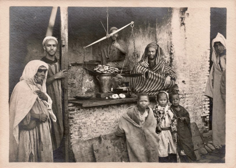 Image à la une : Marchand de beignets dans la médina de Fès. Cliché anonyme (Chambon ? photographie originale faisant partie d’un lot de photos de 1924 du photographe Chambon).