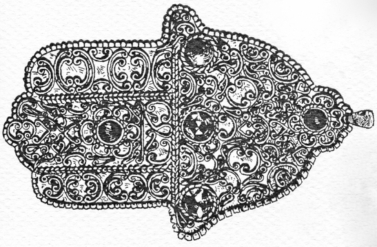 Khamsa selon la technique du pays Aït Ouaouzguit : fil d’argent limitant les parties où sont fondus les émaux de couleur. (Bijoux marocains et berbères du Maroc. Jean Besancenot).