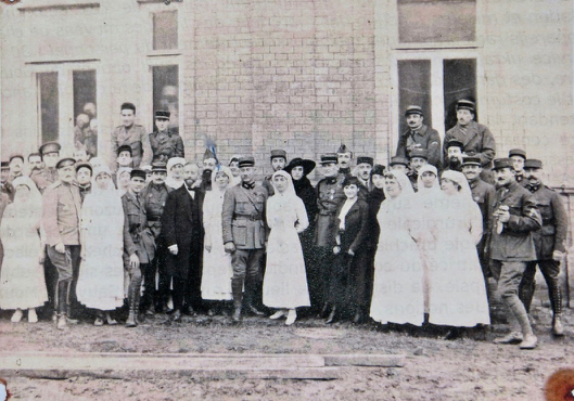 Image à la une : Officiers-médecins, pharmaciens, dames infirmières, sous officiers devant l’hôpital français de Kiev. Au centre Mme Bonneil et le Dr Cristiani. À gauche, les deux médecins russes dont le Dr Krebs. 1917. Photographie collection Dr Cristiani.