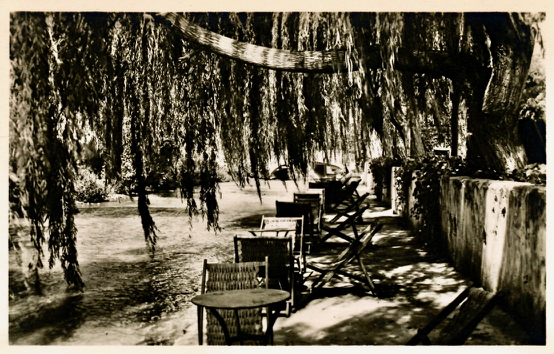 Image à la une : Le long de l’oued Fès, vers 1945. Fès, ses eaux et ses jardins offrent, en dépit de la température, un merveilleux décor estival au touriste qui cherche à découvrir l’âme voilée du vrai Maroc.