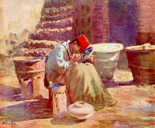 Image à la une : « Le potier » d’après un tableau de J.-F. Bouchor, dans « Fès ville sainte » de Camille Mauclair et Joseph-Félix Bouchor. 1930. Éditions Henri Laurens.