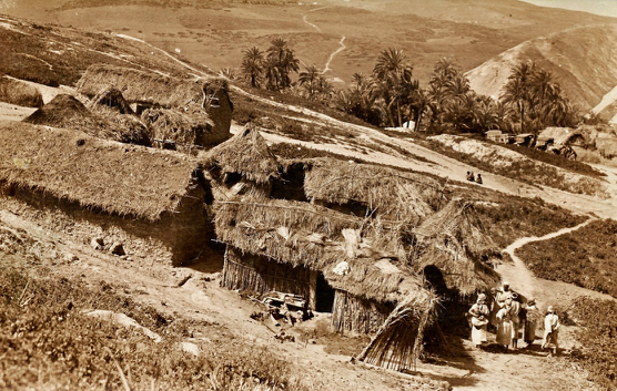 Image à la une : le douar de Sidi Harazem ; en arrière-plan la palmeraie avec le marabout. Cliché anonyme, vers 1928.