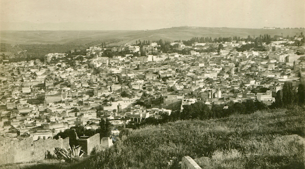 Image à la une : Vue générale de Fès à partir des tombeaux mérinides. Cliché Bouhsira vers 1930.