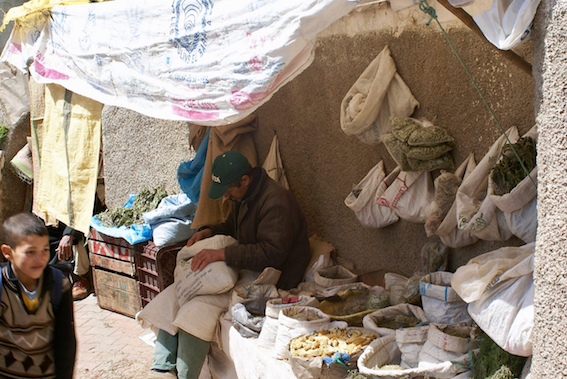 Sur le trajet, une ou deux boutiques débordent d’escargots « boubouch », des petits gris, échappés des sacs ou paniers pendant la nuit et garnissant les portes en bois et les murs des boutiques ce qui n’a pas l’air d’inquiéter le marchand.
