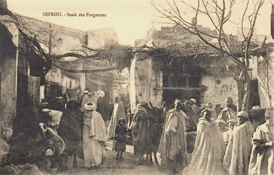 Sefrou, au début des années 1950, c’est, pour nous enfants, les trajets à travers le mellah et la médina pour accompagner, à pied, notre mère au marché ; les achats quotidiens s’effectuent chez les marchands juifs ou musulmans, aux échoppes bien achalandées.
