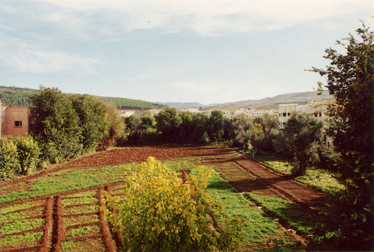 Les jours de congés scolaires, nous accompagnons M. Cauneille à son jardin extérieur, à la sortie de Sefrou, sur la route d’El-Menzel, un peu avant le marabout de Sidi Boumediene ; c’est l’occasion de « leçons de choses » sur les cultures maraîchères et il nous initie également aux subtilités de la répartition de l’eau et de sa gestion programmée par rotation dans le temps.
