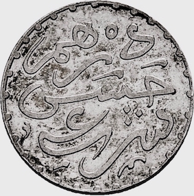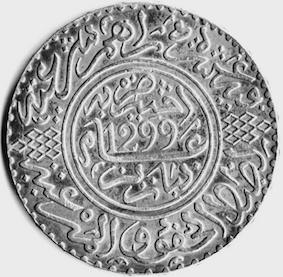 Parmi les écus étrangers qui étaient les plus connus et qui avaient cours et force libératoire dans les affaires, on note d’abord le réal ou douro, qui sont des dénominations empruntées à la langue espagnole à cause de la proximité de l’Espagne. Réal et douro furent donc les noms que l’on donnait habituellement à la pièce d’argent de 5 pesetas espagnoles, à la pièce d’argent de 5 francs français, et, plus tard, après la création de la monnaie el-hassania à la pièce de 5 pesetas ou 14 metqal (5 francs). Le réal étranger qui était le plus connu, le plus recherché et par suite le plus répandu au Maroc, était le réal boumedfâa (réal à canon), qu’on appelait ainsi en arabe à cause de son effigie représentant des armoiries surmontées de la couronne, le tout flanqué de deux tubes d’artillerie. Il portait aussi le nom de réal bououden (réal à oreille), en raison de sa deuxième face qui laissait voir, de profil une tête d’homme dont l’oreille était très apparente. Il existait aussi le réal dit « sabil » que les Israélites prononçaient « zabil » déformation du nom de la reine d’Espagne Isabelle II, détrônée en 1868 par la guerre civile et sous le règne de laquelle, dit-on, cette monnaie fut frappée. Ce réal n’avait plus au Maroc que sa valeur intrinsèque d’argent, car il était démonétisé depuis la chute de cette reine. Cette même pièce était connue aussi sous le nom de réal d’el mra, le « réal de la femme », allusion à son effigie féminine, ce qui le faisait toujours déprécier par les Marocains. Comme monnaie d’or, nous avions le « doblonne » ou doublon espagnol (4 louis), qui valait en monnaie française 80/82 francs, suivant les fluctuations de la valeur de l’or, le louis français ou napoléon (4 douros français, espagnols ou hassani). Quant aux subdivisions de ces monnaies, on employait la peseta, la demi-peseta, le franc français et le demi-franc. Pour ce qui concernait la petite monnaie, on se contentait pour faire l’appoint, de la monnaie purement marocaine en cuivre, frappée à Fès ou à Marrakech, et dont la principale unité était la mouzouna et-tmenia. Trois unités de celle-ci formaient un derhem ou dixième partie d’un metqal, qui représentait le 1/14 d’un réal hassani (à cette époque on ne disait pas «rial» et « nouçrial » mais « ar-ba’tach el metqal » et « seba’ del mataqel »). La petite monnaie de bronze (pièce de 10 mouzounat et ses sous-multiples) existait aussi avant le Protectorat. Elle fut frappée à Fès et en Europe (Paris et Berlin).