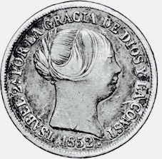 À gauche, réal « sabil » ou « réal d’el-mra » ; à droite, réal ou douro : pièce d’argent de 5 pesetas.