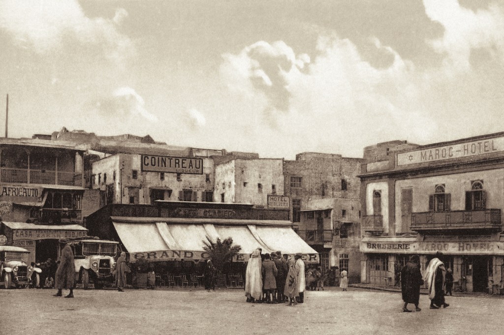 À l’heure vespérale des solitaires méditations, les arbres des jardins semblent tenir salon de conversation, où ne sont que quelques initiés taciturnes. Le Mellah, au contraire, prend à cette heure, une animation extraordinaire. Centre commercial de grosse importance, il est le passage entre deux quartiers.