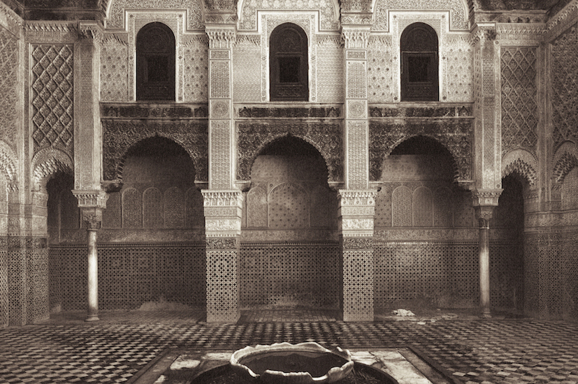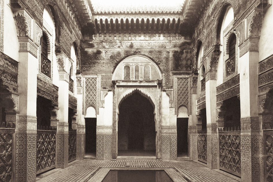La visite des médersas est une obligation rituelle pour les pèlerins de Fès. Il faut les voir toutes. Il faut s’extasier à l’intérieur de la vénérable Sahridj dont les murs décrépits se mirent mélancoliquement dans le cristal d’un étang terni. Il faut admirer longtemps, en s’arrêtant devant chacune des merveilles de ses salles, l’incomparable Attarine, et son mihrab de zeliges polychromes et son immense lampe prodigieuse. Il faut s’étonner devant la grandeur de la Cherratine, la plus vaste, celle qui fut construite sur les ruines d’une autre université que les fidèles détruisirent parce qu’elle avait été profanée. Il faut chercher dans le patio de la Mesbahia les restes des marbres rapportés d’Algésiras pour orner l’école fameuse dans laquelle le savant Mesbah ben Abdallah commentait les paroles de Mahomet devant les docteurs qui, pour l’entendre, venaient de tous les pays d’Orient. Il faut passer bien des heures, bien des jours, à observer les cloîtres, les oratoires, les loggias, les galeries de la sainte Bou Inanya dont la miraculeuse beauté enthousiasma tant Léon l‘Africain. Ouverts aux curiosités des étrangers, malgré leur caractère religieux, ces séminaires qui conservent le cachet particulier des époques auxquelles ils furent édifiés par des Sultans amis du savoir, constituent les plus purs reliquaires de la tradition et de l’art maure. Et ce qui leur donne à nos yeux une valeur extraordinaire, c’est que, comme les impénétrables mosquées, ces édifices n’ont jamais cessé d’avoir une vie, une palpitation, une activité spirituelle, une influence directe dans le développement du peuple maghrébin. Ouvrez une des petites portes qui donnent sur les galeries supérieures de l’un quelconque d’entre eux, et, en pénétrant dans une cellule d’étudiant, vous le remarquerez tout de suite…