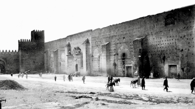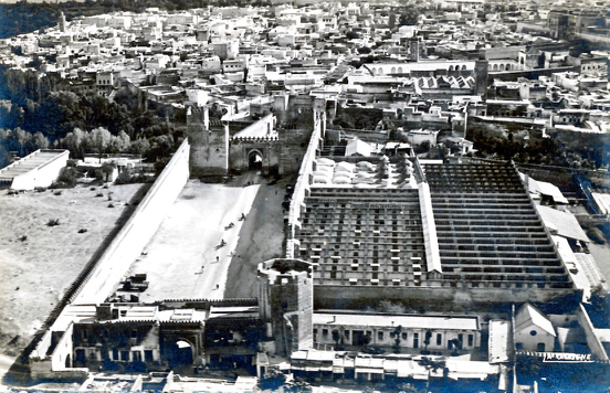 Image à la une : Vue d’ensemble de la façade de la Makina dans le vieux méchouar. 1938. Photo Henri Bressolette.