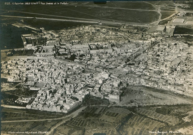 Fès-Jdid et le Mellah. Cliché du 11 janvier 1926 à 100 m. Pilote Sgt Pouillié. Observateur Adj Delaby.