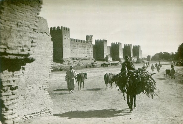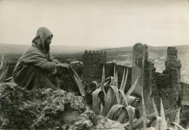 Méditation devant le rempart almohade vers 1950. Cliché anonyme
