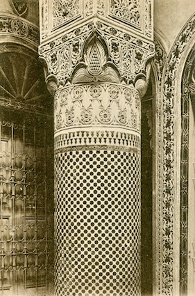 Si l’artisan appartient au bâtiment, c’est principalement au chantier qu’il faut le voir. Lorsque l’entreprise revêt quelque importance, son équipe est nombreuse et la division du travail est poussée très loin ; le maître mosaïste, par exemple, répartit la tâche entre des gamins qui tracent au calame, sur des carreaux bruts, le contour des formes à obtenir, et entre des aides qui successivement découpent ces formes, les dégrossissent, les finissent et les mettent en place. Mais le secret du tracé, roh es-senâa – l’âme du métier – est le privilège du patron seul, du véritable artisan jaloux de son savoir et de son expérience. L’enseignement d’une technique, même à des collaborateurs, ne risquerait-il pas de faire naître une concurrence préjudiciable à celui qui le donnerait ? Les besoins sont en somme restreints et peut-on, de propos délibéré, se faire tort à soi-même ? Il est sage de songer à l’avenir et de ne pas se créer de rivaux fâcheux.
